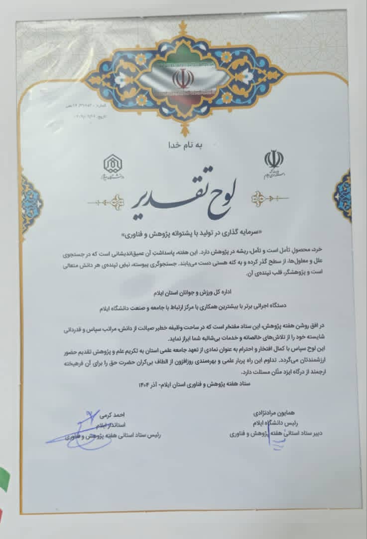 ‍ اداره‌کل ورزش و جوانان ایلام دستگاه برتر پژوهشی استانداری شد